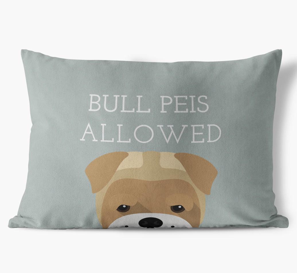 This exclusive, luxurious pillow is printed with the words ‘Bull Peis Allowed’, which I’m sure Your Bull Pei would definitely approve of.