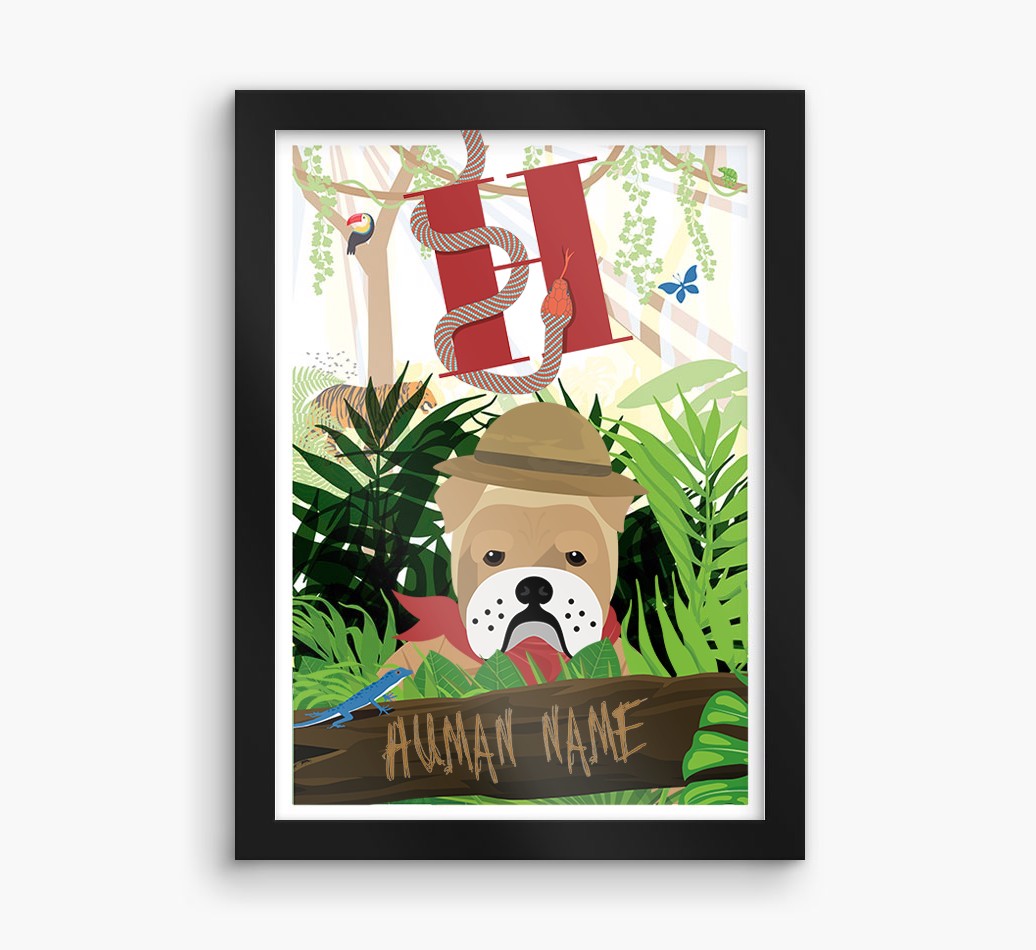 Starring your Bull Pei as an intrepid explorer, this jungle-themed print will look rawr-some wherever it's displayed in the home.