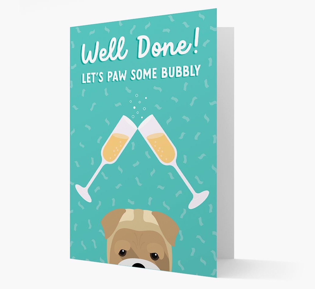 As Bull Pei does in this card, it’s time to wish your furiend a ‘well done’ and paw some bubbly!