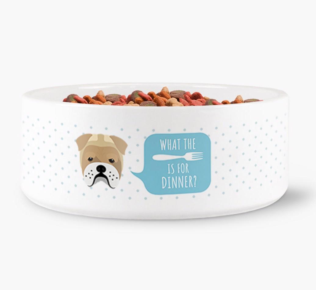 'What's For Dinner?' - Personalized Dog Bowl for your Bull Pei