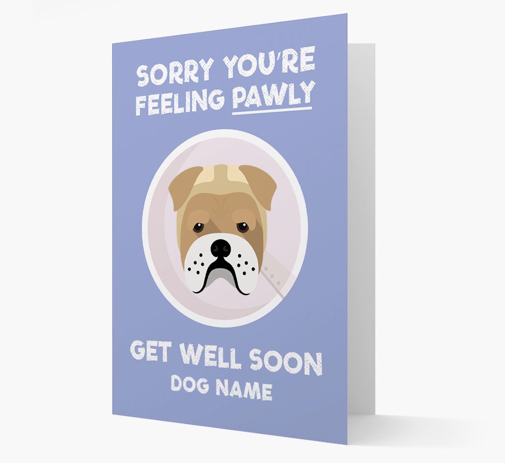 'Sorry You're Feeling Pawly' - Personalized Bull Pei Get Well Soon Card