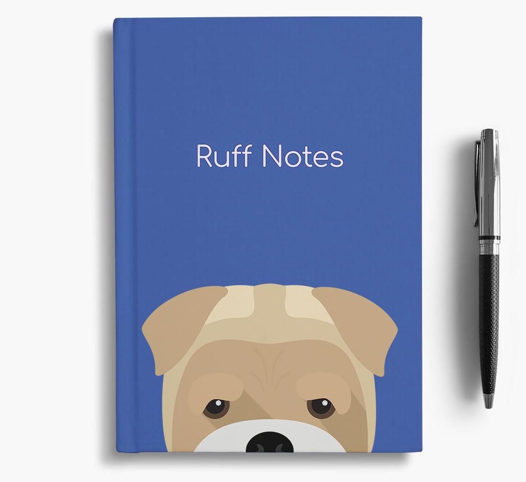 The front cover features our exclusive Bull Pei peeking icon and is printed with the words, ‘Ruff Notes’, whilst the back is printed with the words ‘Live. Laugh. Woof.’.