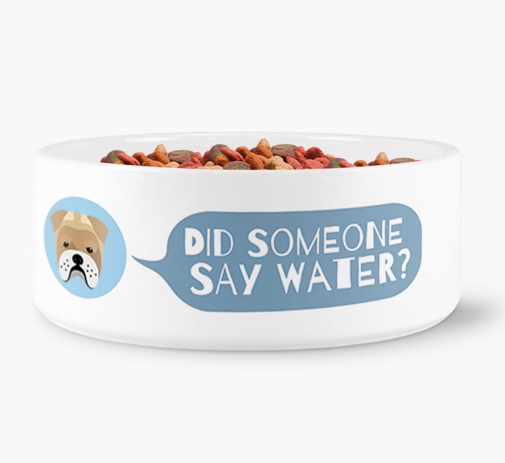 'Did Someone Say Water?' - Personalized Water Bowl for your Bull Pei