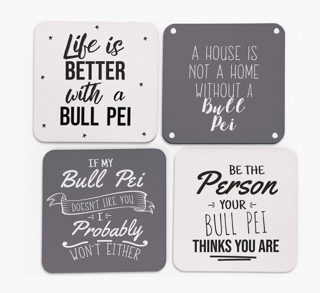 'Bull Pei Quote' - Personalized Bull Pei Coasters (Set of 4)