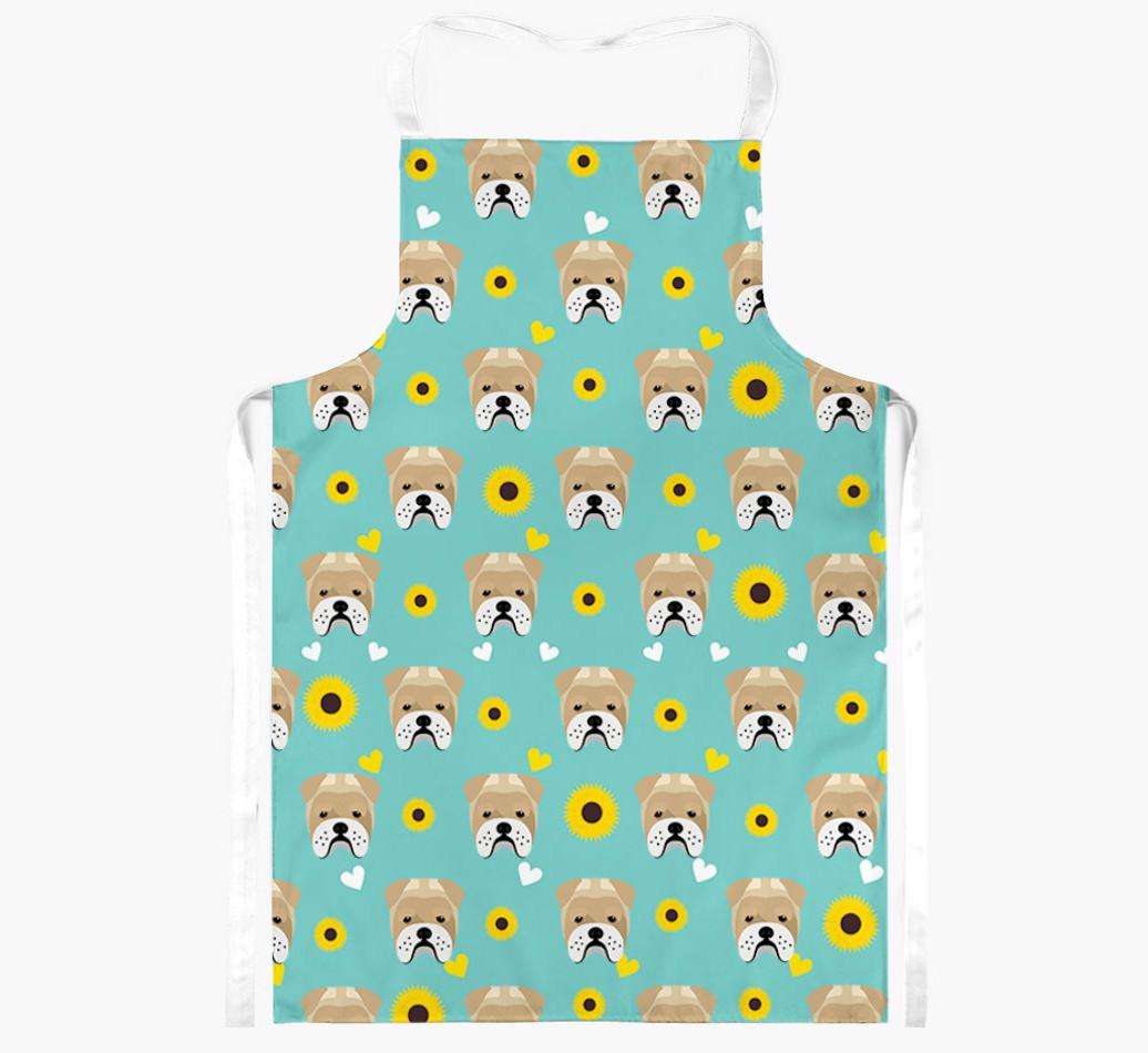 This apron has a delightful sunflower and heart pattern, and best of all - it's personalized with Bull Pei's face too! This cute and colorful apron is sure to put a smile on every dog lover's face.