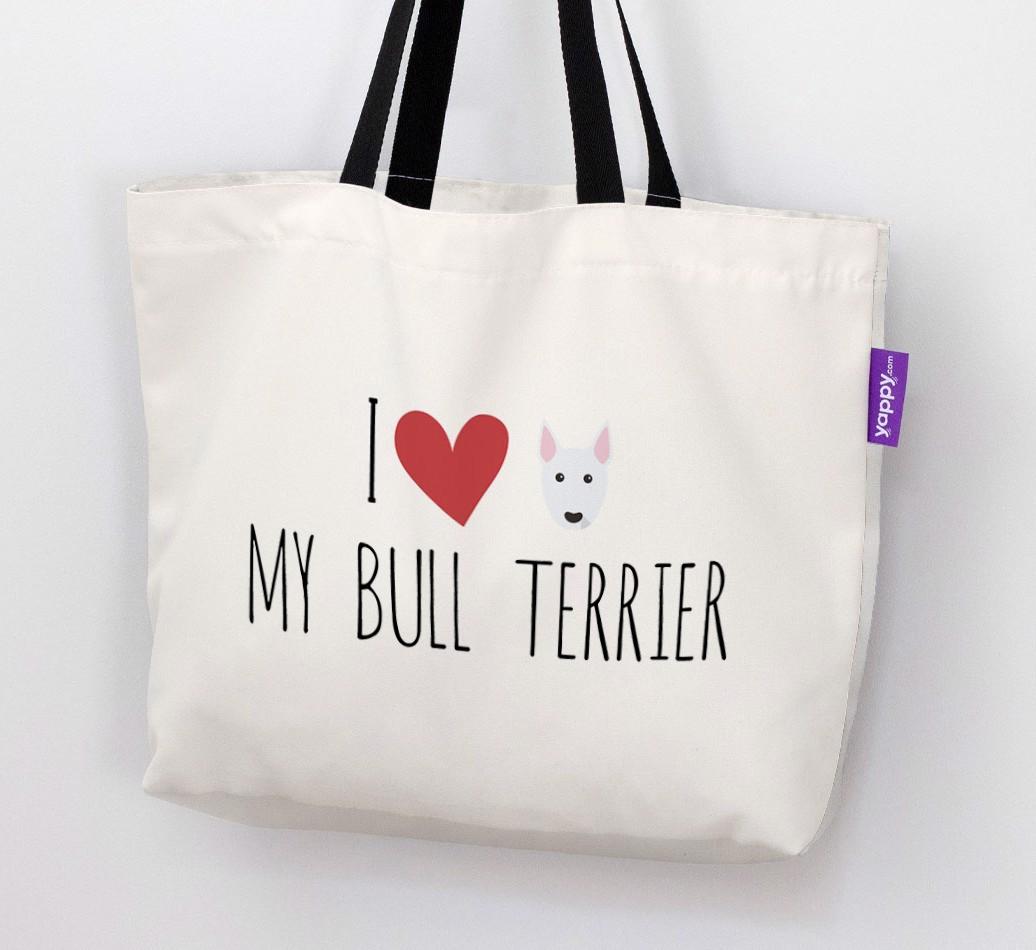 Featuring our exclusive Bull Terrier icon and one of the best quotes around I Love My Bull Terrier, this bag is sure to get heads turning.
