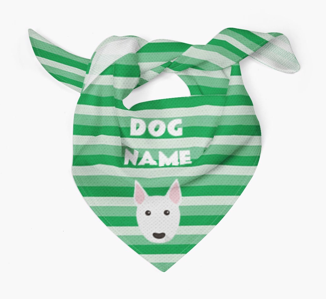 Well, now you can make sure your Bull Terrier’s name is on everyone’s lips with this personalized bandana.