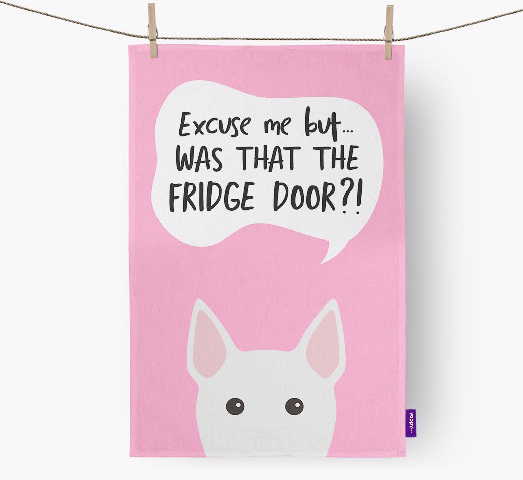 'Was That The Fridge Door?!' - Personalized Bull Terrier Dish Towel