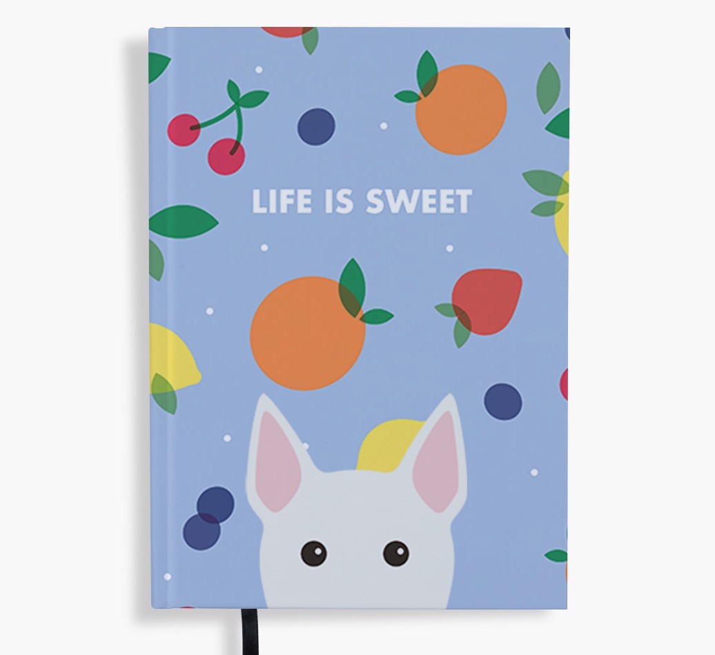 Featuring a seriously scrumptious fruity pattern, this vibrant notebook will add a lovely pop of color to your desk, plus as it’s personalized with your Bull Terrier’s cute icon, you’ll fur-ever be reminded of sweet times together.