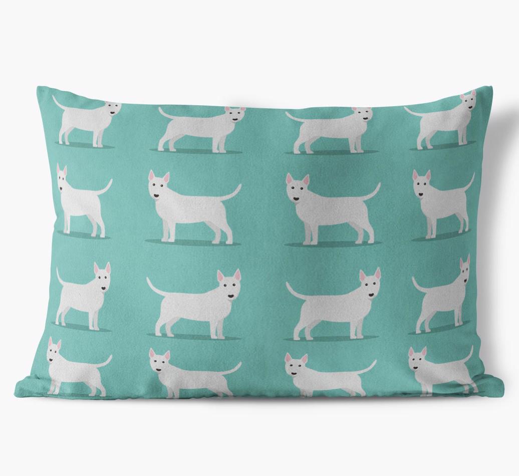 Featuring a pattern of our pawsome Bull Terrier icons, this pillow really is wagnificent!