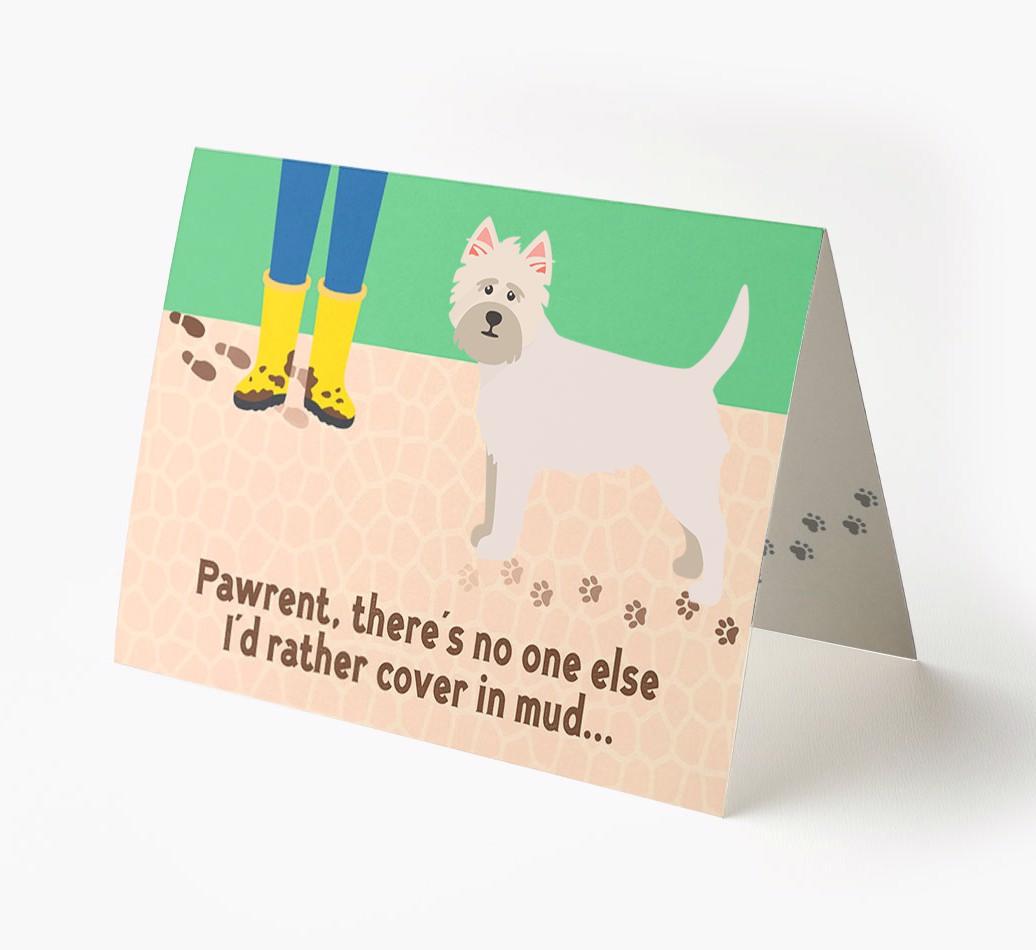 This comical card is sure to delight Cairn Terrier's pawrent (without getting muddy), especially as it stars their Cairn Terrier's cheeky icon.