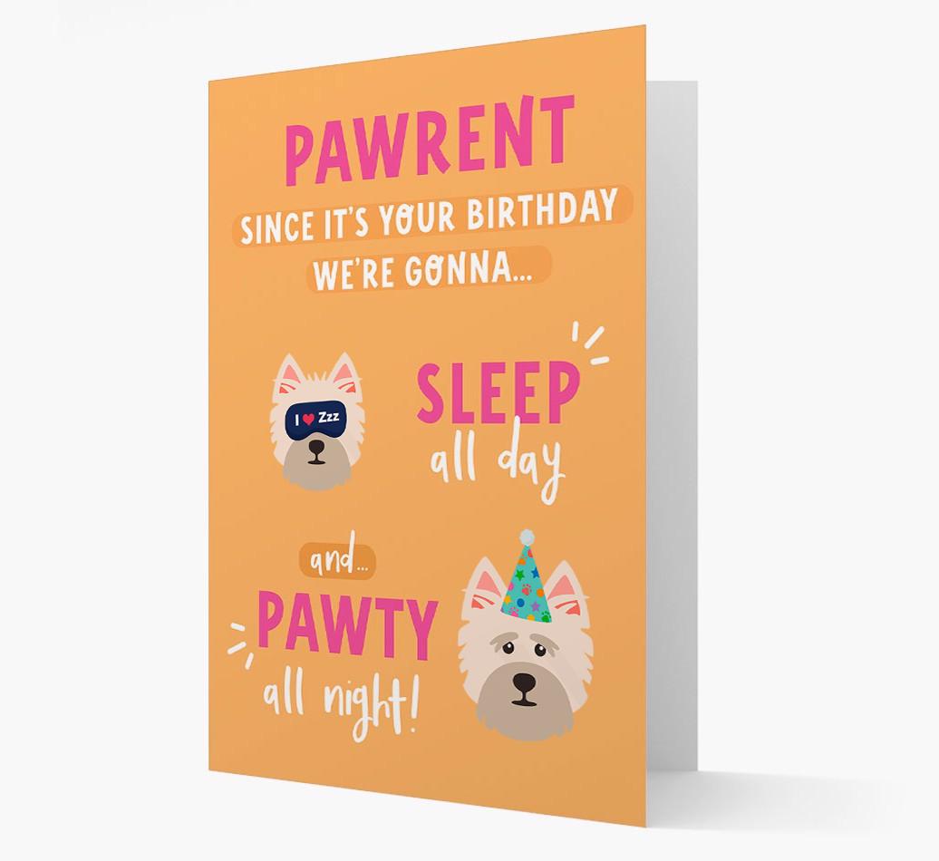If Cairn Terrier woofs to pawty all day and sleep all night, this card encourages their pawrent to do it with them on their birthday!