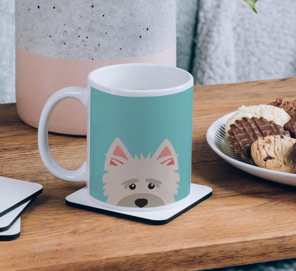 Enjoy the perfect coffee break with a mug that stars your furry friend! Featuring a Yappy.com exclusive Cairn Terrier peeking icon, this pawgeous mug will look at home in any dog lover's kitchen and we're pretty sure Cairn Terrier will be a fan too.