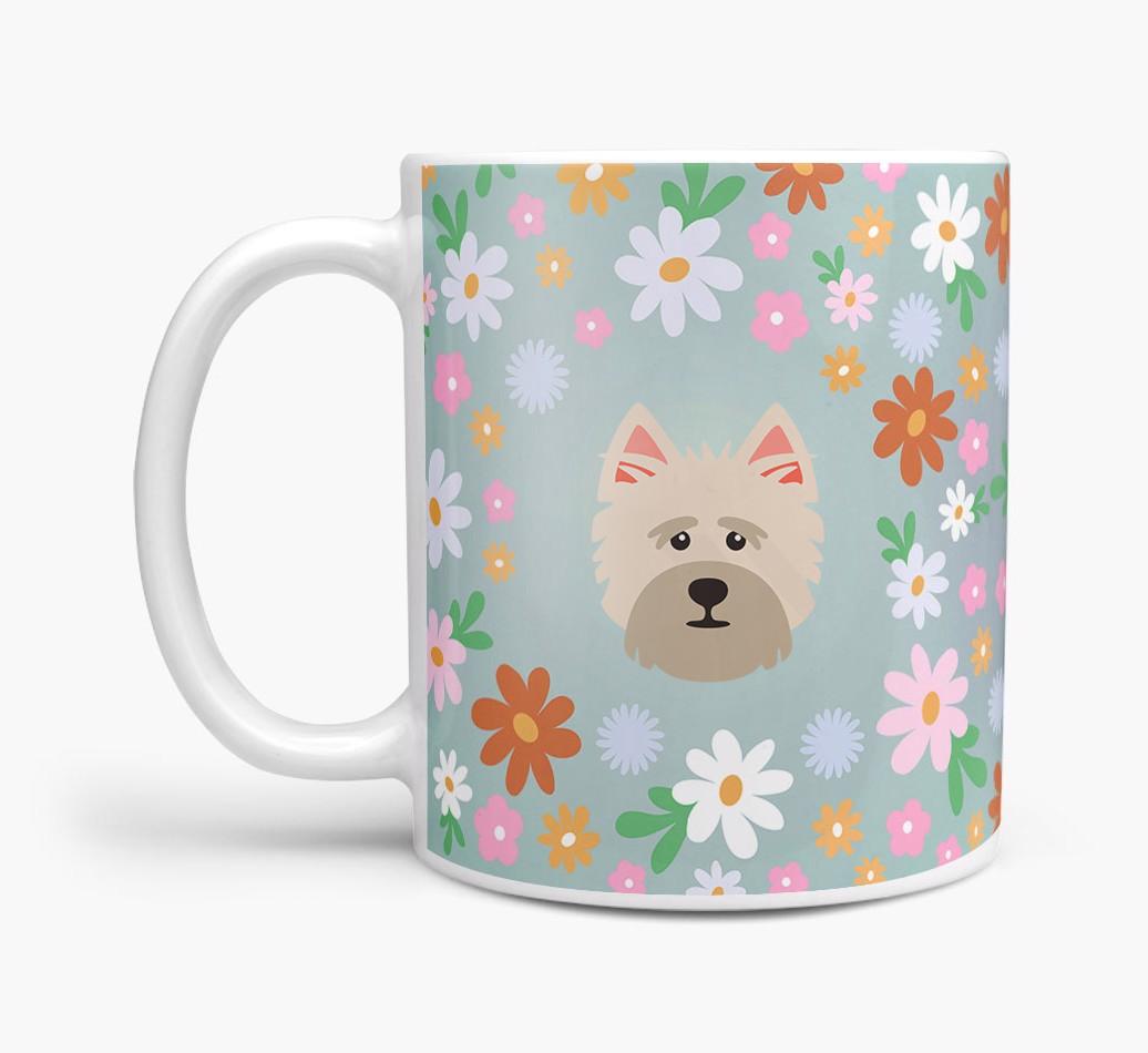Featuring a colorful bunch of flowers, this mug is printed with the words 'woofly grandma' on one side of the mug and your Cairn Terrier's cute icon on the other. Bloomin' lovely!