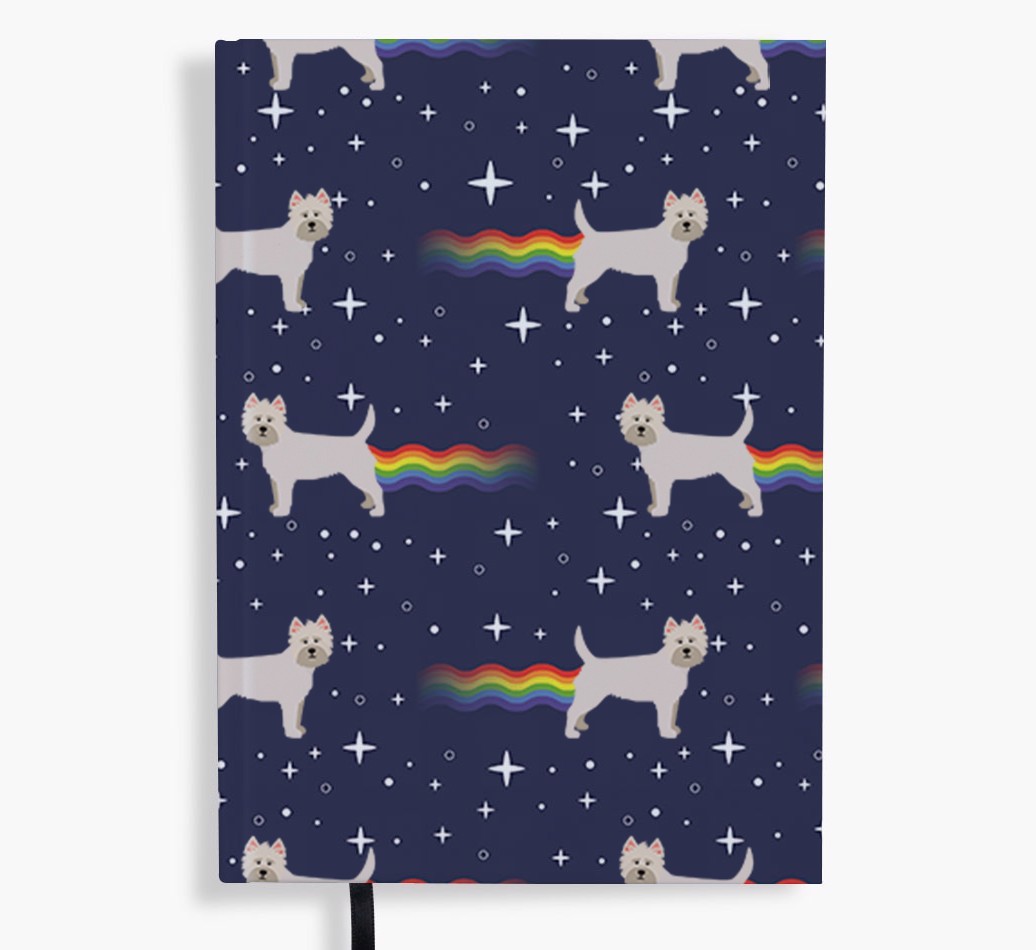 Featuring your cheeky Cairn Terrier, lots of twinkling stars and available in a range of bold colors, this fun notebook is truly out of this world.