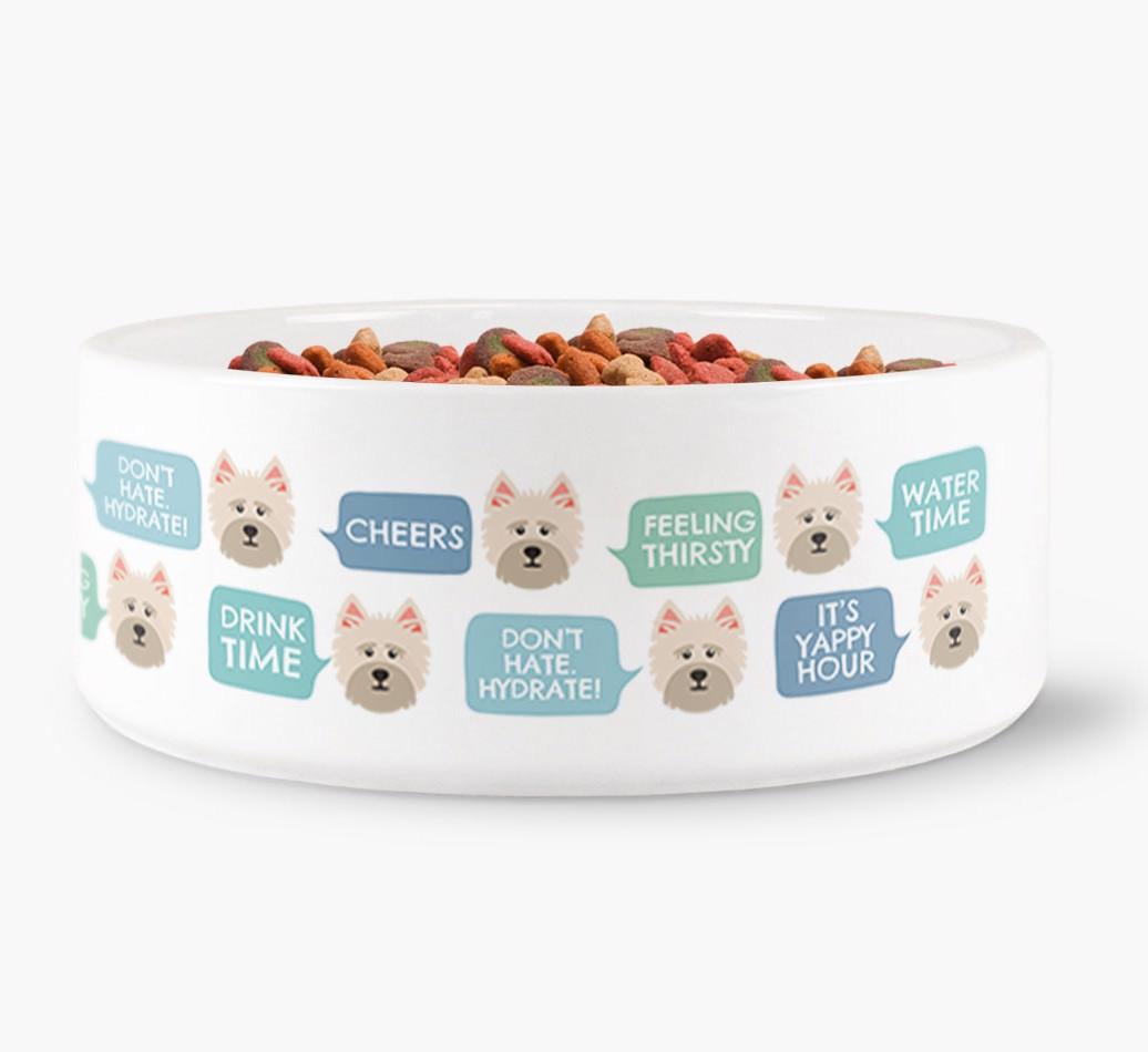 This water bowl is full to the brim with Your Cairn Terrier’s favorite thirst-quenching phrases!