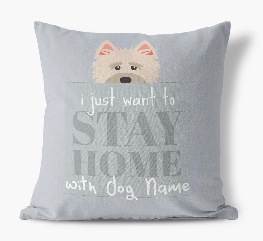 Stay Home: Personalized Cairn Terrier Canvas Pillow