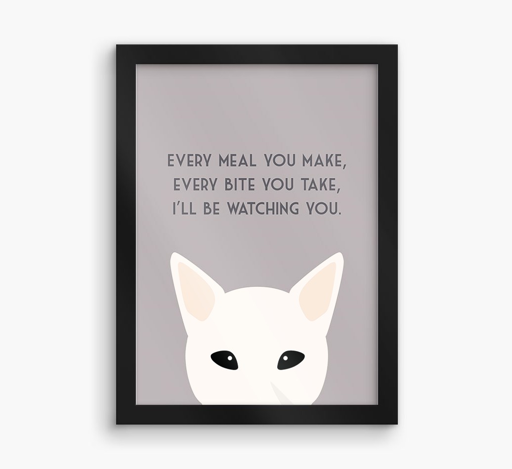 Printed with the words, ‘Every meal you make, every bite you take, I’ll be watching you’ and complete with our cute Canaan peeking from the bottom of the design, this artwork will look great on display in the kitchen or anywhere Canaan Dog likes to watch you eat!