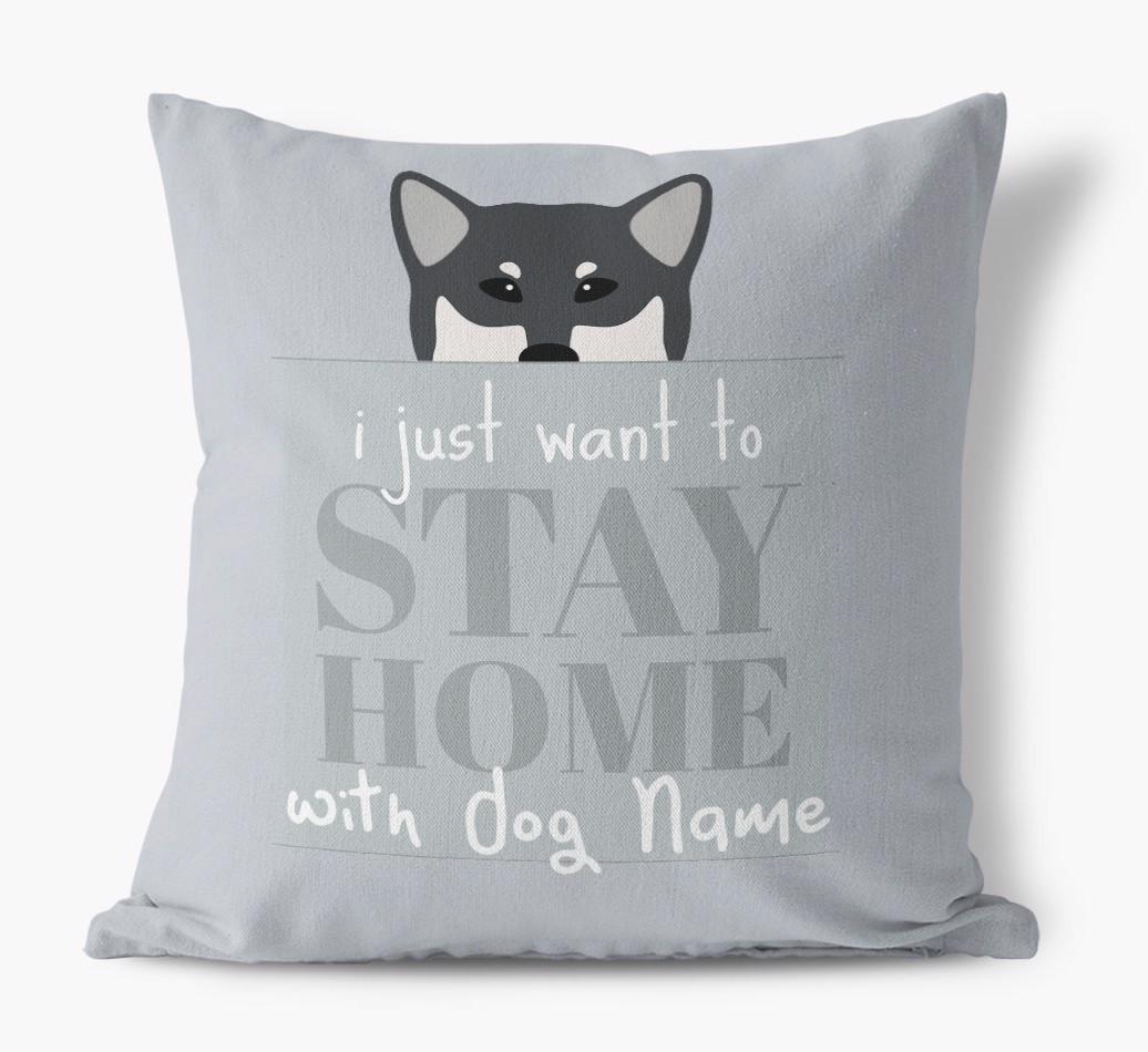 Stay Home: Personalized Canadian Eskimo Dog Canvas Pillow