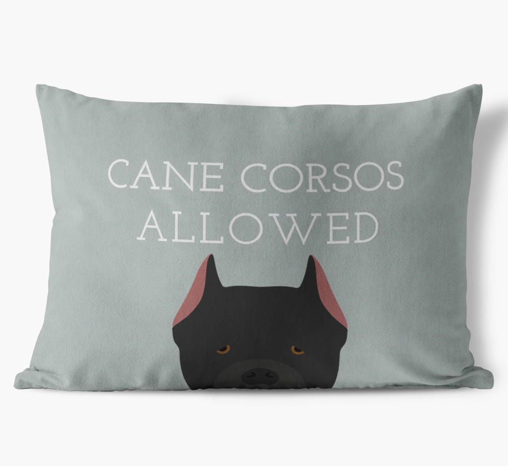This exclusive, luxurious pillow is printed with the words ‘Cane Corsos Allowed’, which I’m sure Your Cane Corso would definitely approve of.