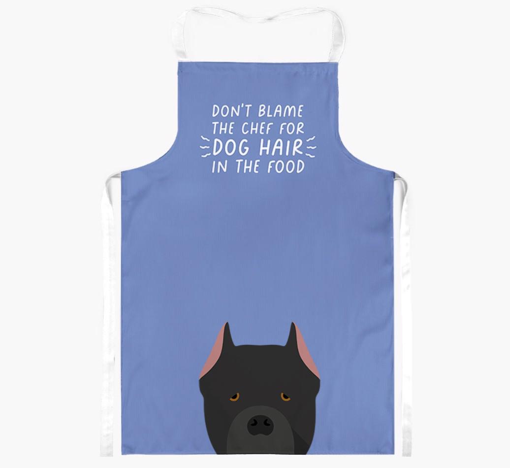 This funny apron will warn friends and family not to blame the chef for dog hairs in their food, they have Cane Corso Italiano to thank for that!