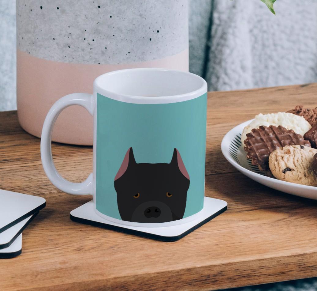 Enjoy the perfect coffee break with a mug that stars your furry friend! Featuring a Yappy.com exclusive Cane Corso peeking icon, this pawgeous mug will look at home in any dog lover's kitchen and we're pretty sure Cane Corso Italiano will be a fan too.