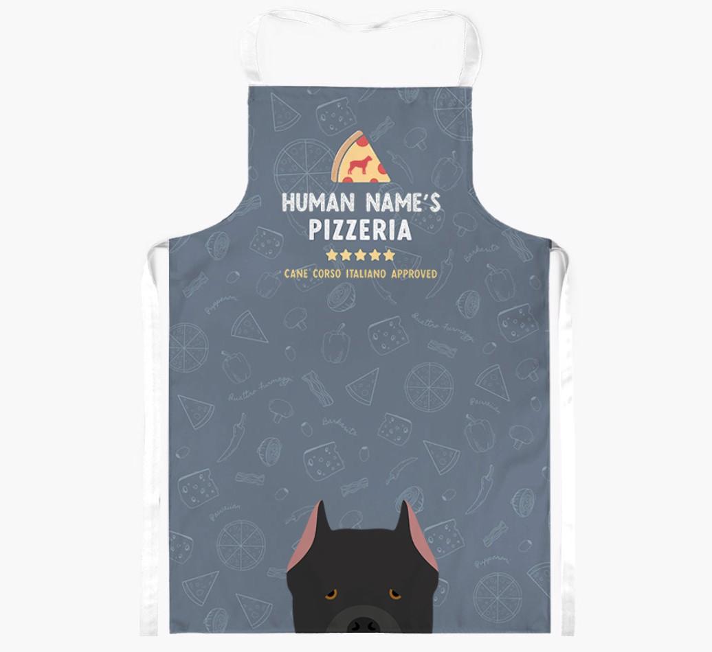 Featuring your furry friend's icon and lick of approval, plus your chosen human name, this apron is pawfect for anyone who considers themselves a pizza maestro in the kitchen. Available in a choice of 5 rustic colors, it'll make any Cane Corso lover happy.