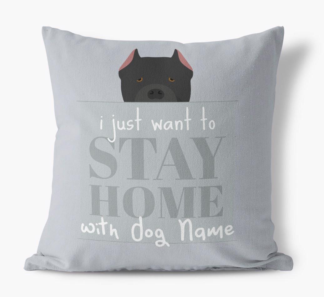 Stay Home: Personalized Cane Corso Italiano Canvas Pillow
