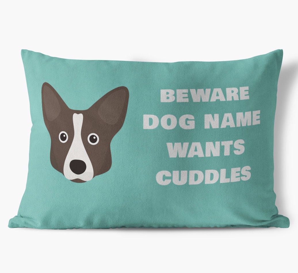 Beware of Cuddles: Personalized Cardigan Welsh Corgi Soft Touch Pillow