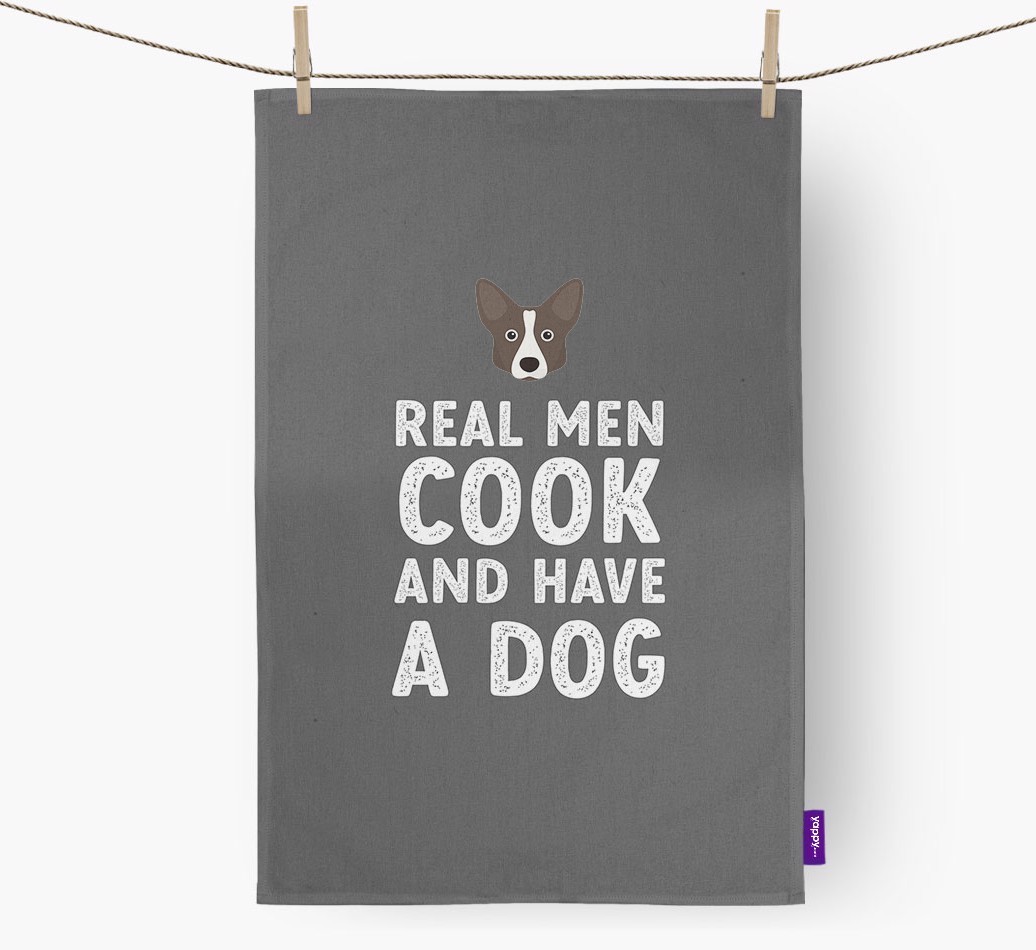 Real Men Cook And Have A Dog: Personalized Cardigan Welsh Corgi Dish Towel