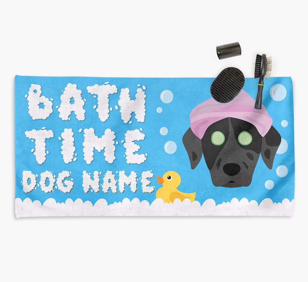 Bubble Bath Time: Personalized Catahoula Leopard Dog Towel