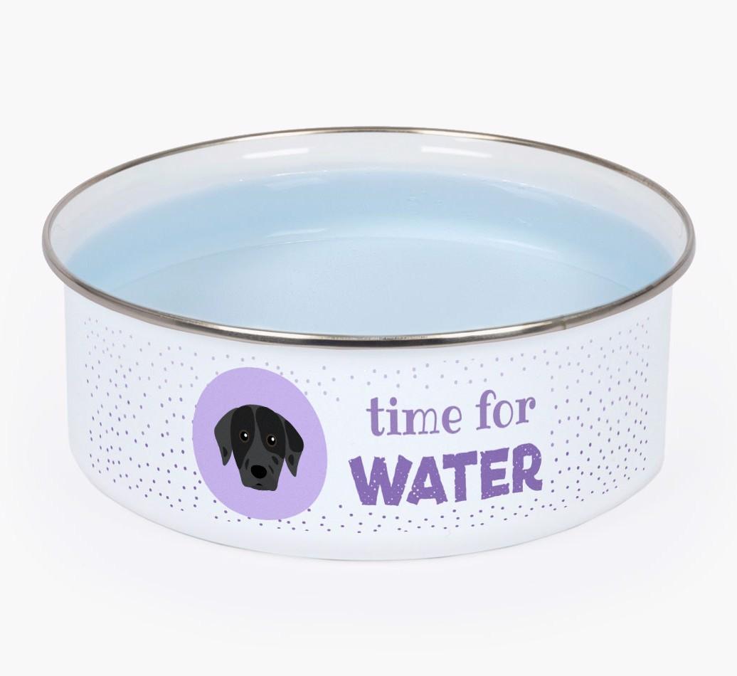 Time For Water: Personalized Enamel Catahoula Leopard Dog Bowl