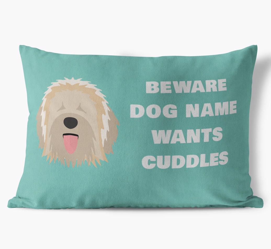 Beware of Cuddles: Personalized Catalan Sheepdog Soft Touch Pillow