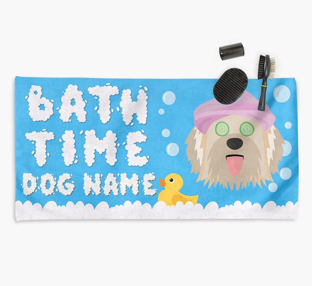 Bubble Bath Time: Personalized Catalan Sheepdog Towel