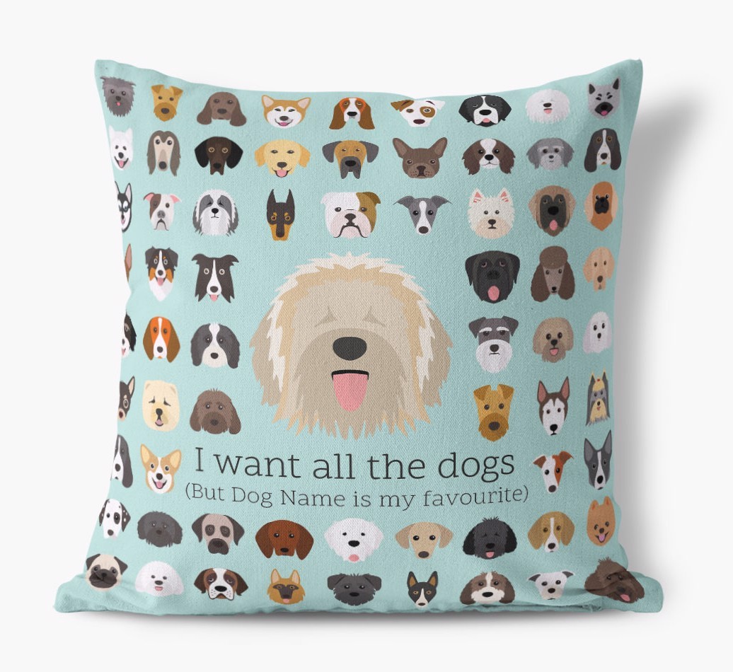 I Want All the Dogs: Personalized Catalan Sheepdog Canvas Pillow