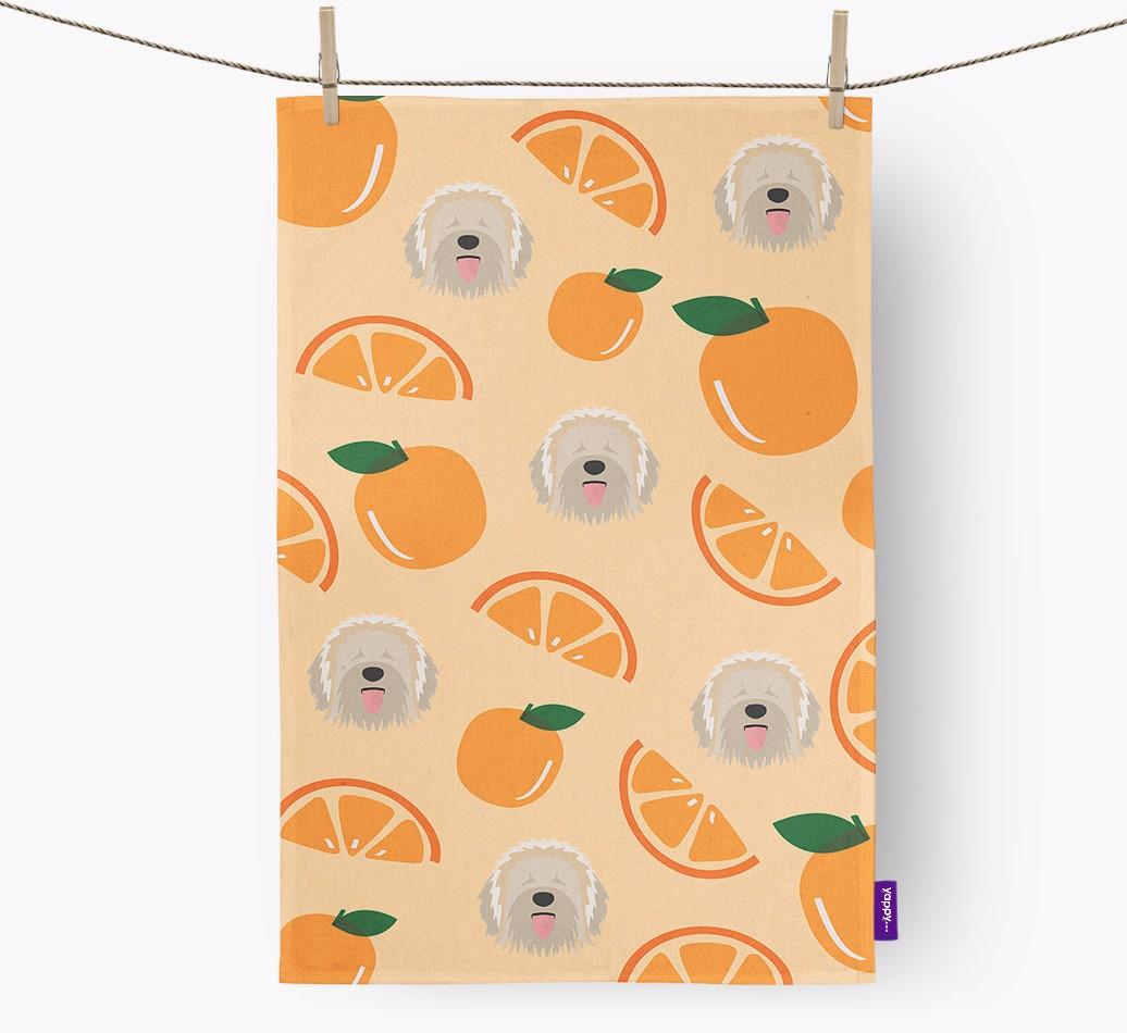 'Fruit Pattern' - Personalized Catalan Sheepdog Dish Towel (Various Patterns)
