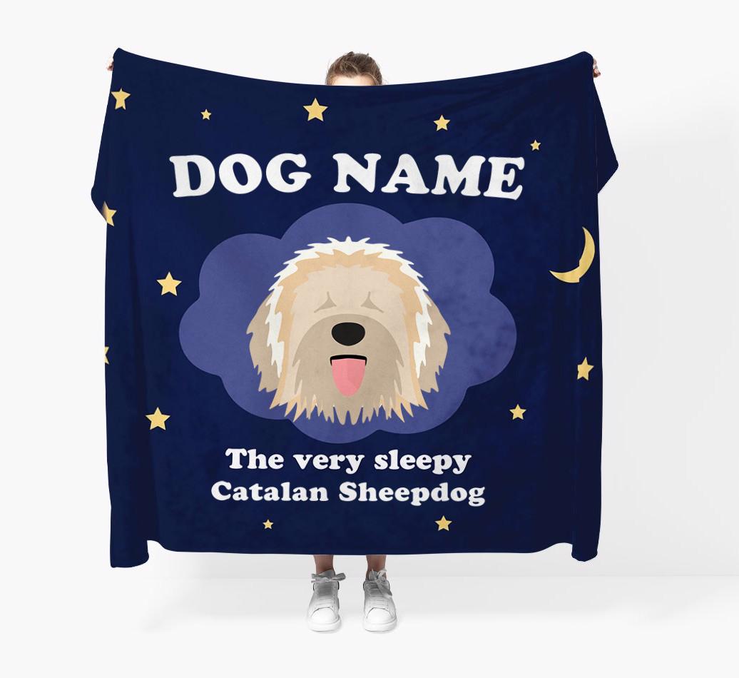'The Very Sleepy...' - Personalized Catalan Sheepdog Throw Blanket