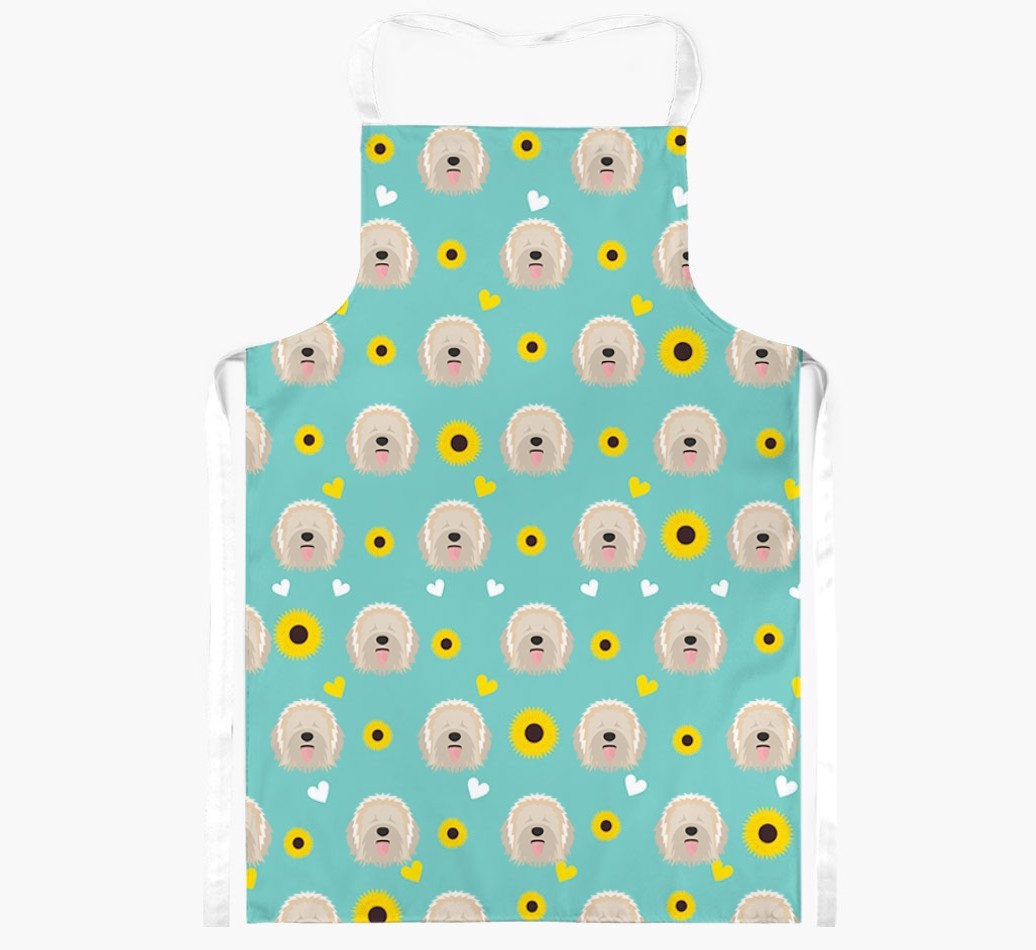 This apron has a delightful sunflower and heart pattern, and best of all - it's personalized with Catalan Sheepdog's face too! This cute and colorful apron is sure to put a smile on every dog lover's face.
