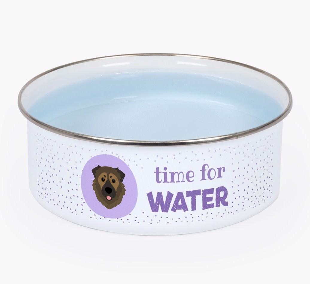 Time For Water: Personalized Enamel Caucasian Shepherd Dog Bowl