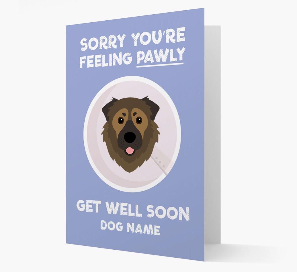 'Sorry You're Feeling Pawly' - Personalized Caucasian Shepherd Dog Get Well Soon Card