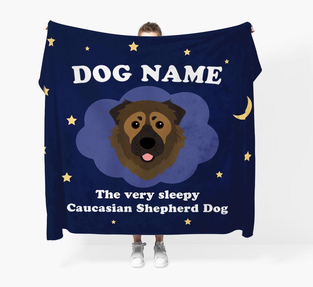 'The Very Sleepy...' - Personalized Caucasian Shepherd Dog Throw Blanket