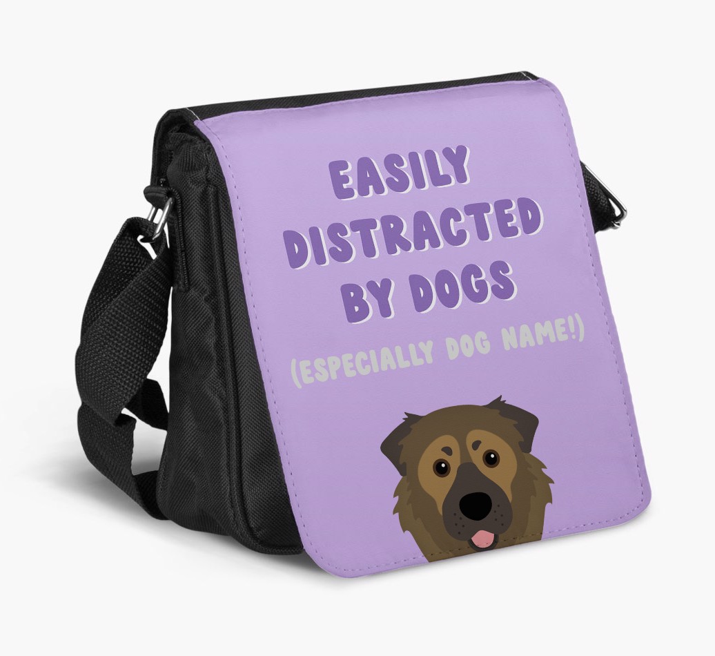 Shoulder Bag 'Easily Distracted by Dogs' with Caucasian Shepherd Dog Silhouette