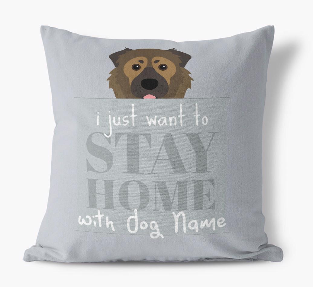 Stay Home: Personalized Caucasian Shepherd Dog Canvas Pillow