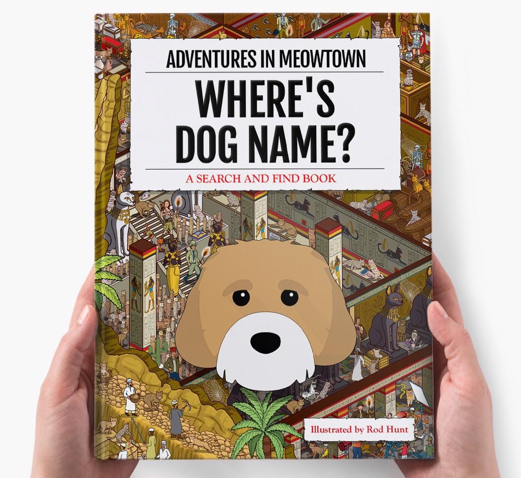 Get ready to unleash your inner detective with our popular Search & Find book, ‘Where’s (insert dog name)?’ It’s the personalized dog book everyone’s yapping about! With twelve beautifully illustrated locations to explore, we challenge you to find your adventurous {breedShortName} on each action-packed page. Can you spot all the canine cameos and funny parodies too?