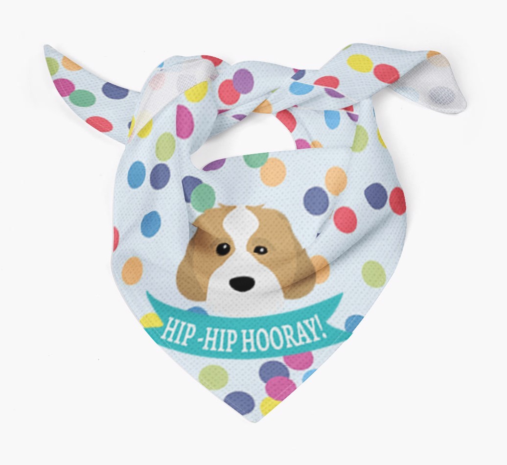 Featuring our famous Cavachon icon and the words ‘hip-hip hooray!’ printed upon a colorful confetti background, Your Cavachon is sure to look pawty ready wearing this bandana.