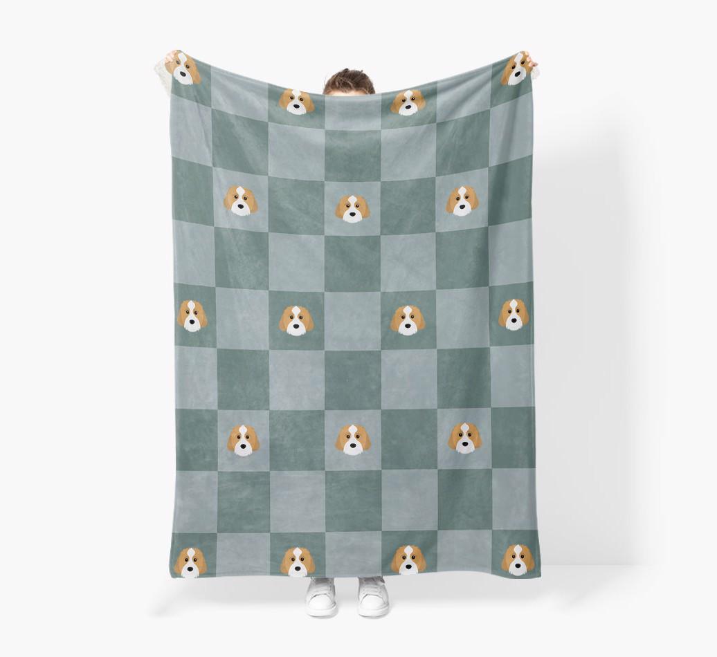 'Checkboard' - Personalized Cavachon Blanket: Premium Sherpa Fleece