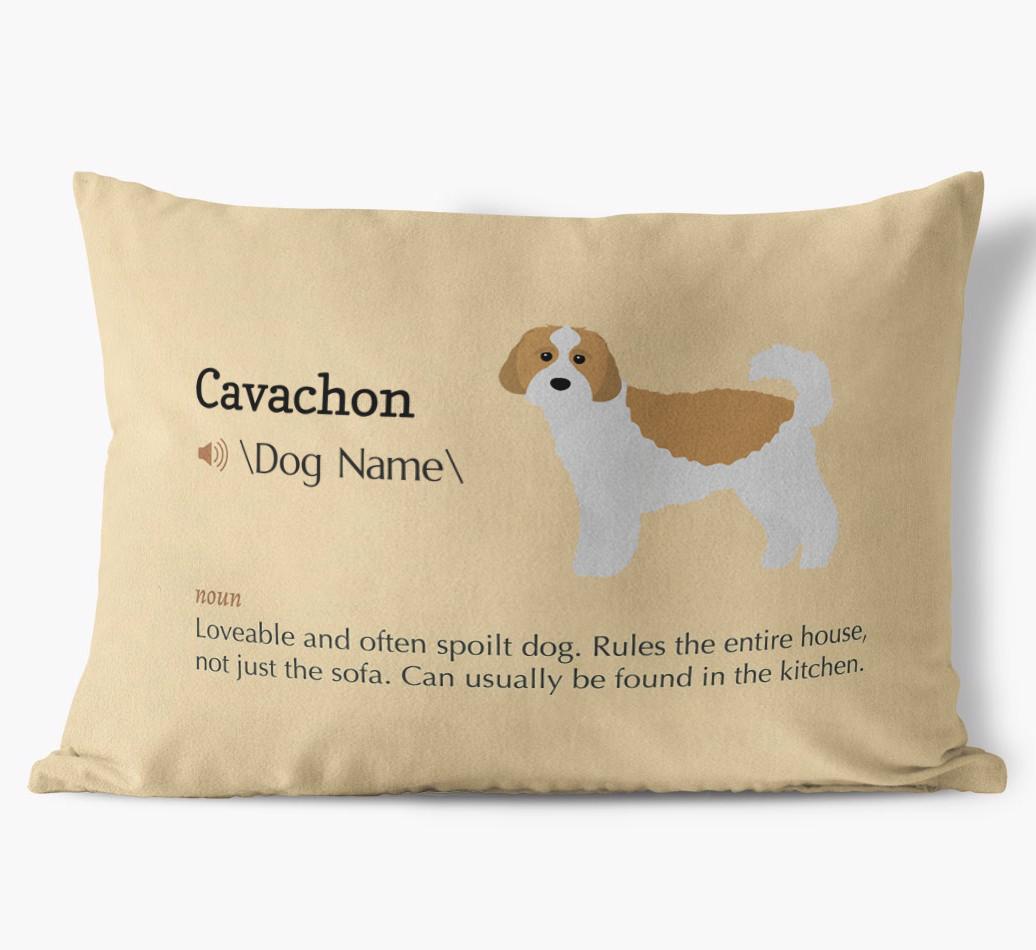 Personalized just for Your Cavachon and featuring a unique Cavachon definition and silhouette, this pillow truly is like no other.