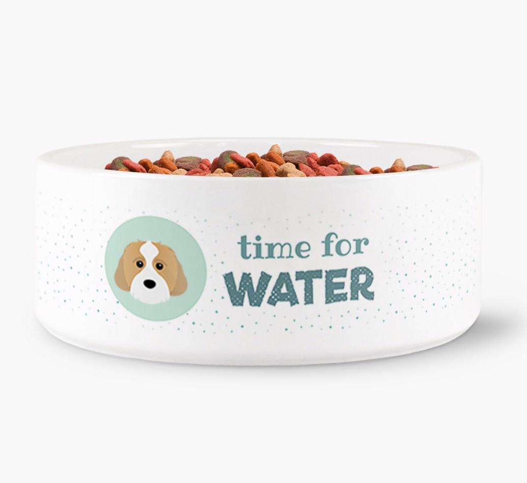'Time for Water' - Personalized Water Bowl for your Cavachon