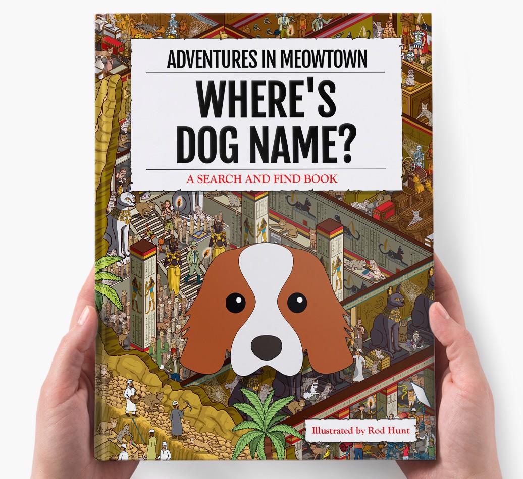 Get ready to unleash your inner detective with our popular Search & Find book, ‘Where’s (insert dog name)?’ It’s the personalized dog book everyone’s yapping about! With twelve beautifully illustrated locations to explore, we challenge you to find your adventurous {breedShortName} on each action-packed page. Can you spot all the canine cameos and funny parodies too?