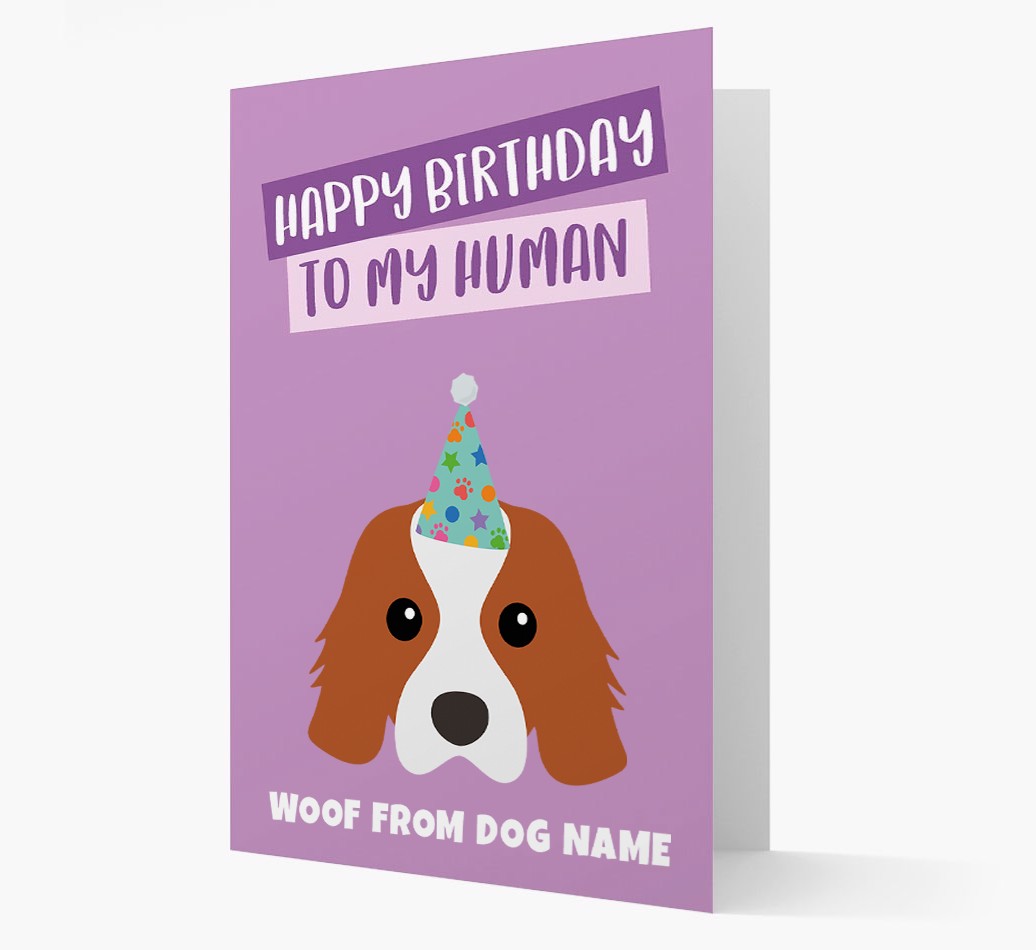 'Happy Birthday to My Human' - Personalized Cavalier King Charles Spaniel Card